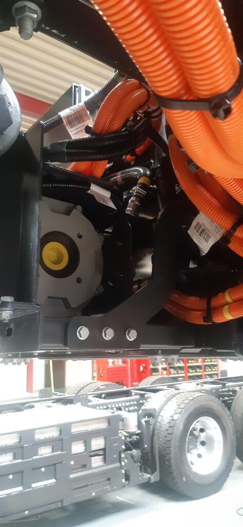Bij deze aanpassing is een frame achter de cabine gemonteerd waar de batterijen van de linkerzijde in geplaatst zijn. Daarnaast zijn er diverse componenten verzet om bij te dragen aan een “vrij” chassis aan de linkerzijde. De e-PTO is verplaatst en er is een nieuw koelcircuit inclusief leidingen en slangen volgens ESTEPE design gemonteerd. Bij deze aanpassing was het ook noodzakelijk om enkele wijzigingen door te voeren in de kabelboom. Kortom, een groot deel van onze mogelijkheden en competenties zijn samengekomen bij het aanpassen van deze trucks.